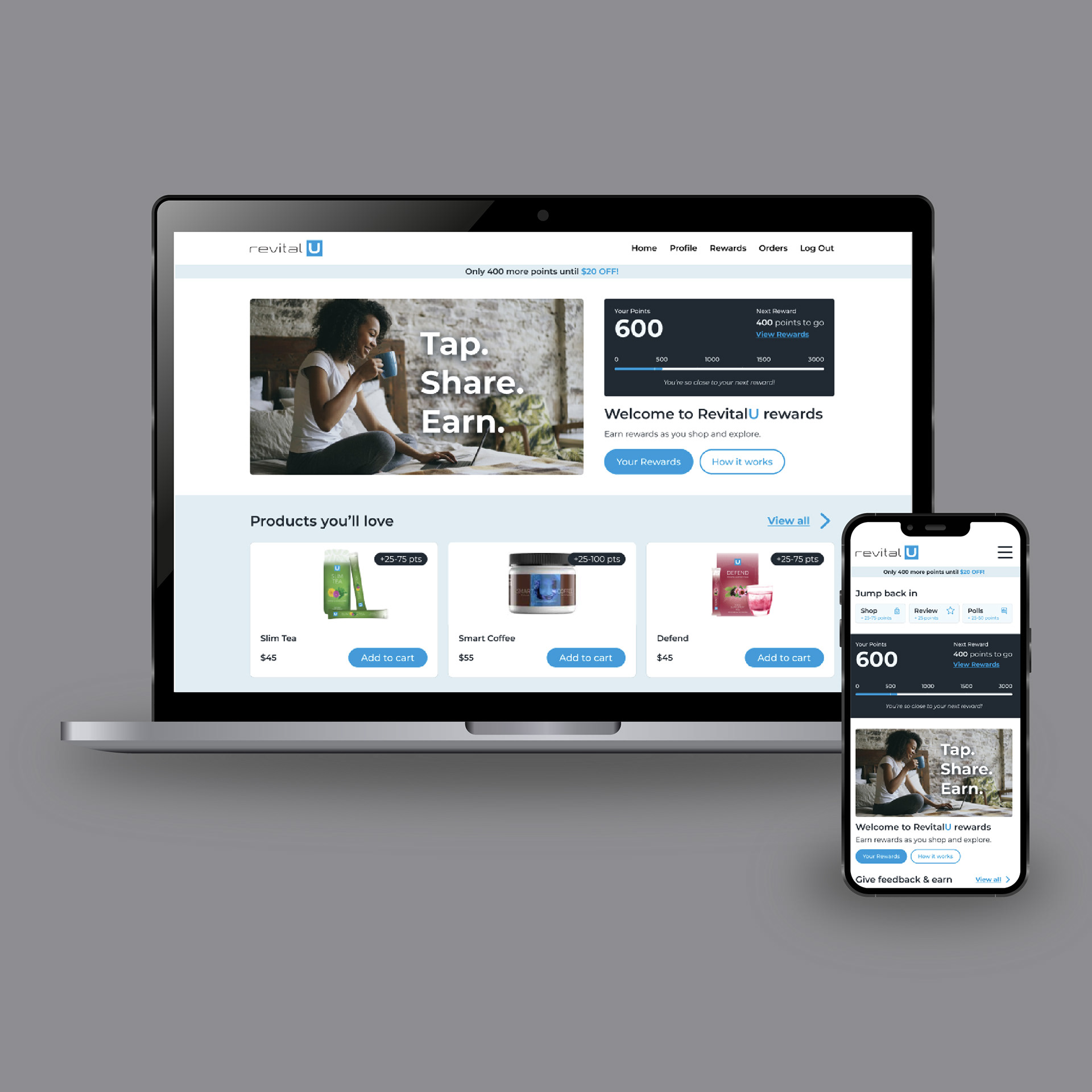 Revital U offers wellness products and rewards for sharing.